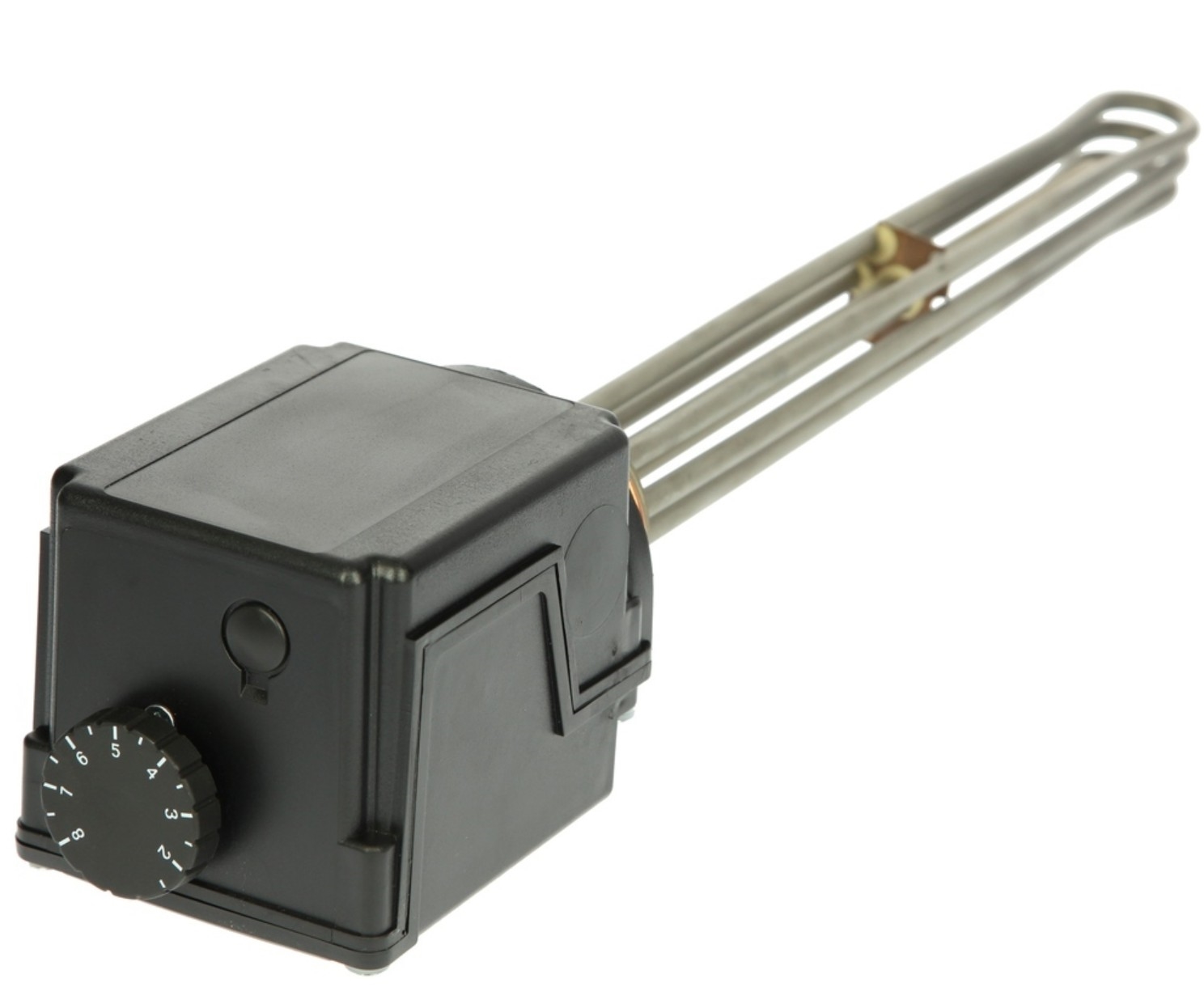 Het elektrisch verwarmingselement met een kunststof afdekkap is getest conform DIN 44922 en DIN VDE 0700/CE. Hij heeft een temperatuurregelaar en een temperatuurbegrenzer.