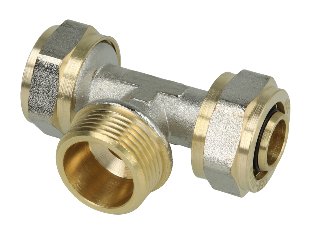 Messing koppelingen met knelring voor PEX/PERT-buis T-stuk
