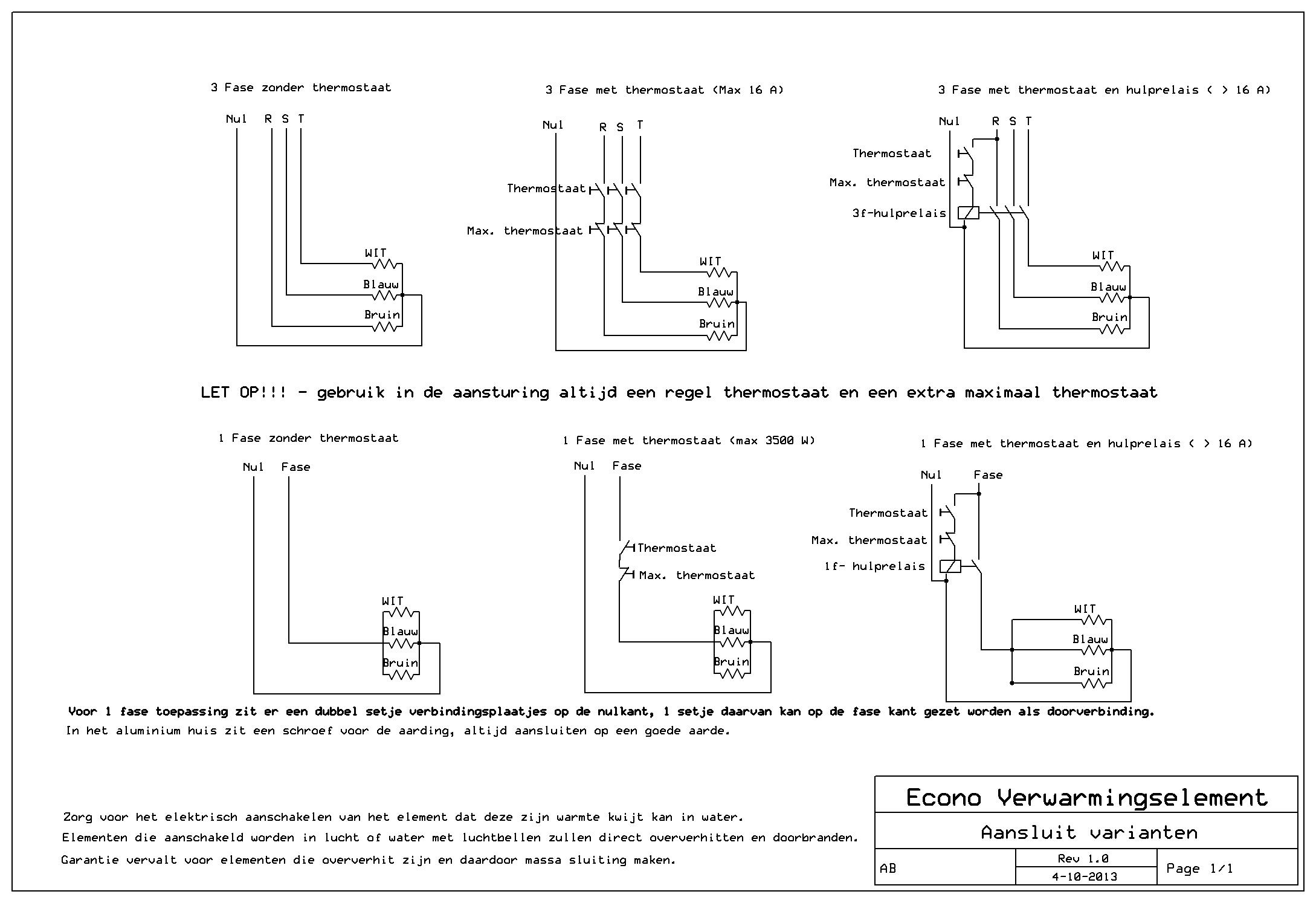 Garantie: 1 jaar (m.u.v. defecten door luchtbellen, kalkvorming of galvanische corrosie)