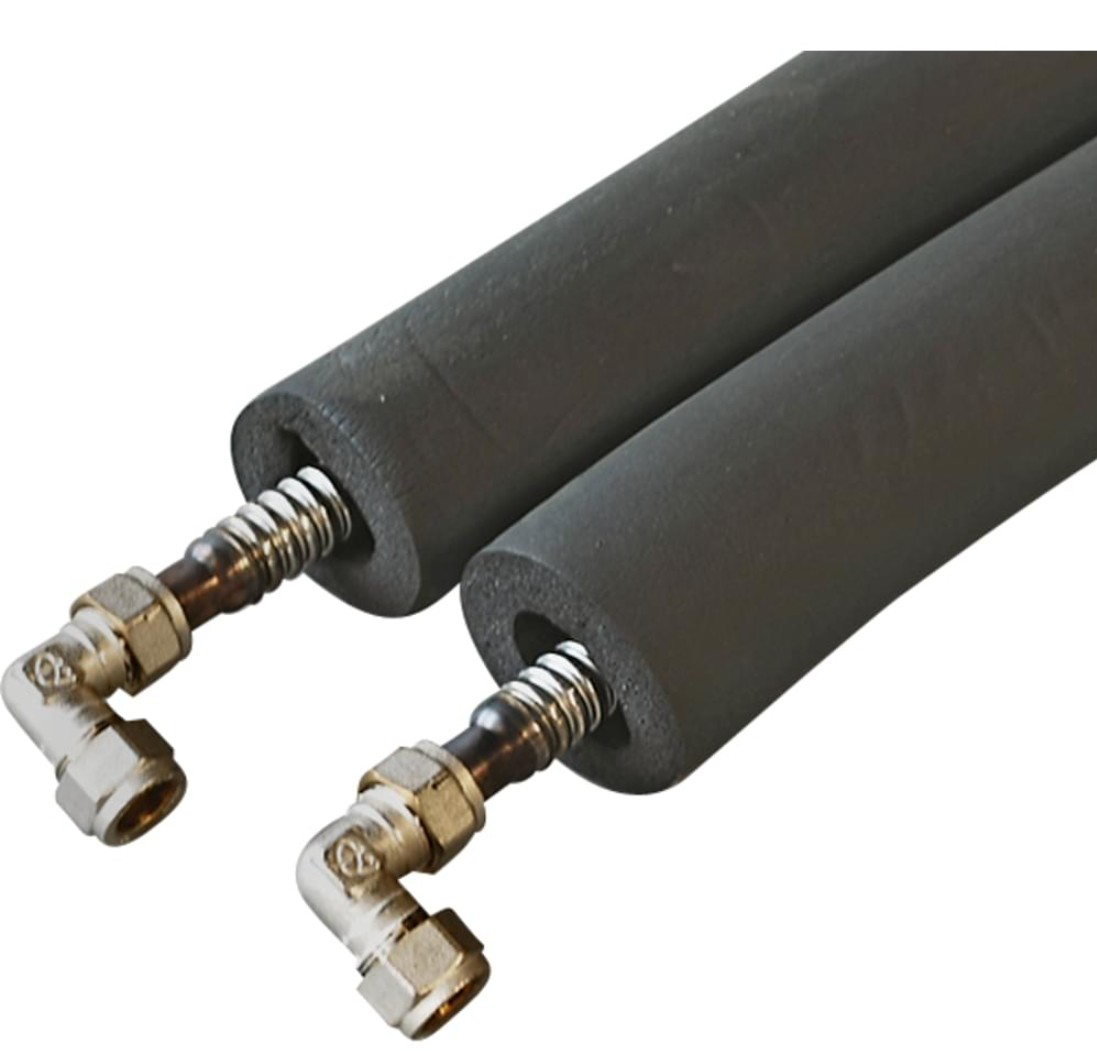 De verbindingsset dient voor de geïsoleerde, hydraulische aansluiting van de collector op de buisleiding. De spiraalbuis is gesoldeerd en gereinigd en beschermd door een PE-buisfolie.