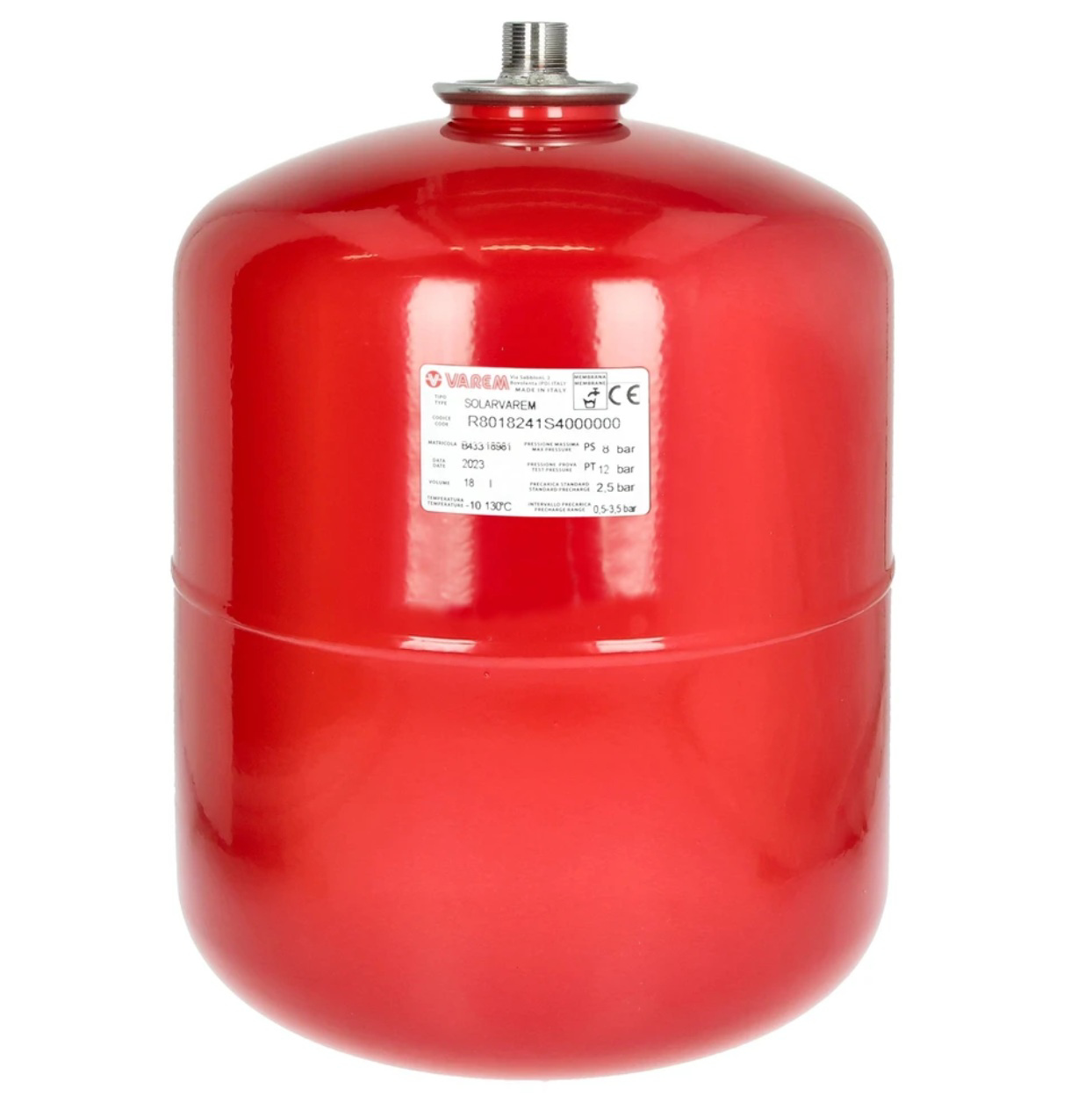Expansievat Solarvarem, voordruk 2,5 bar, voor solarinstallaties.