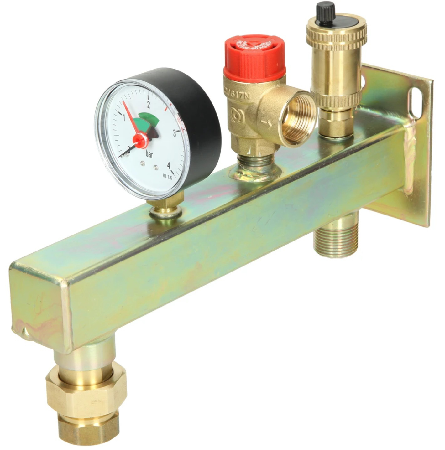 Montage-unit voor de aansluiting van membraanexpansievaten voor gesloten verwarminginstallaties, gebruiksklaar, voorzien van: