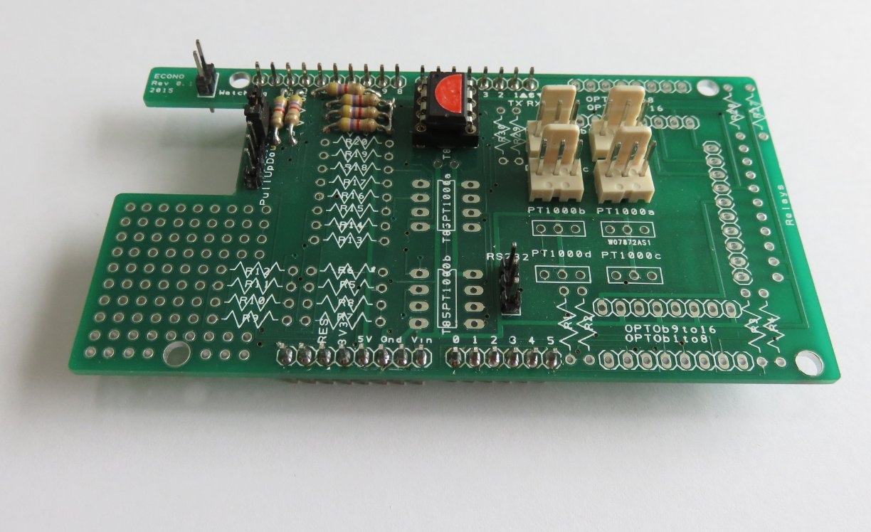 Reads 3 x ºC channels (DS18B20) with 12 bits resolution, 1 pulscounters-on/off detection